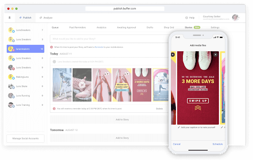 Con Buffer, puoi pianificare in anticipo i tuoi contenuti LinkedIn. Questo rende più facile per individui e team gestire profili e pagine.