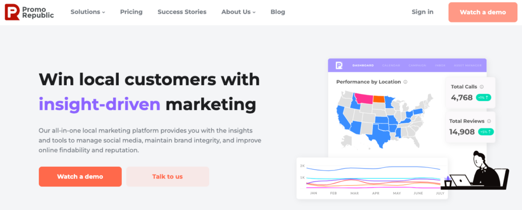 La nostra lista include anche PromoRepublic, che aiuta a pianificare e programmare post su diverse piattaforme social.