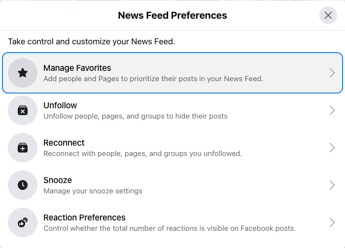 Facebook introducerede en funktion, der lader brugere tilpasse, hvad der vises i deres News Feed. Nye funktioner som Feed Filter Bar har betydning for algoritmen, da den tager højde for brugerens indstillinger først. Brugerundersøgelser er også en stor faktor for, hvad de ser.