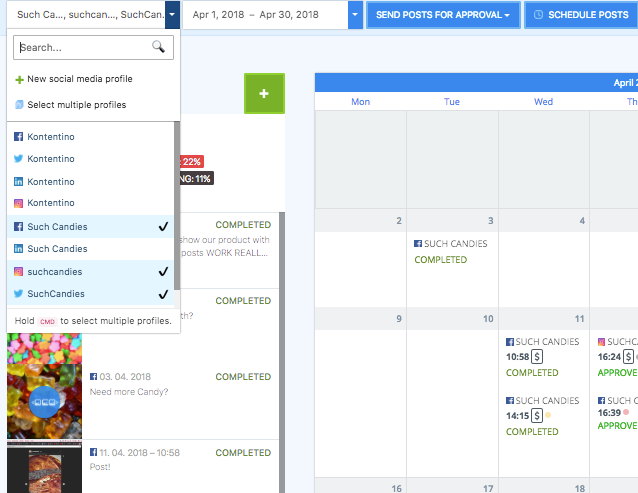Vali loendist kõik profiilid, kuhu soovid postitada, hoides all CMD või CTRL klahvi, et avada need ühises kalendrivaates.