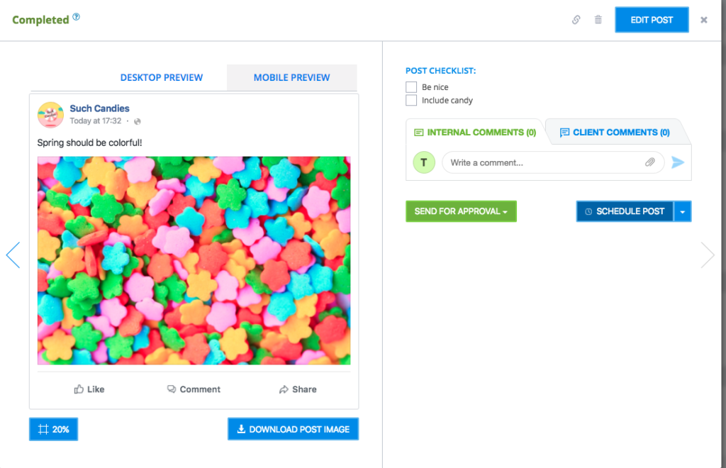 Võimas! Postitus on kopeeritud valitud sisplaani – koos tekstiga. Nüüd saad seda uuesti lohistada kõigile platvormidele, kuhu soovid. Kui sul pole aktiveeritud kinnitusringi (approval process), ajastatakse kopeeritud postitus samaks kuupäevaks ja kellaajaks.
