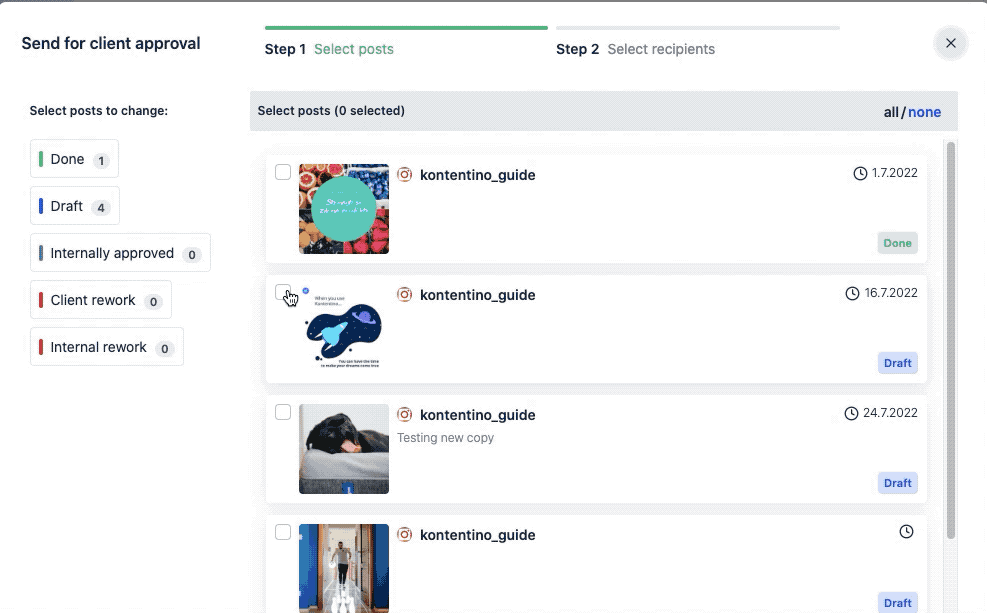 Nema više prebacivanja između računa i slanja brojnih e-mailova. Kontentino je centralno mjesto za brzo dobivanje odobrenja.