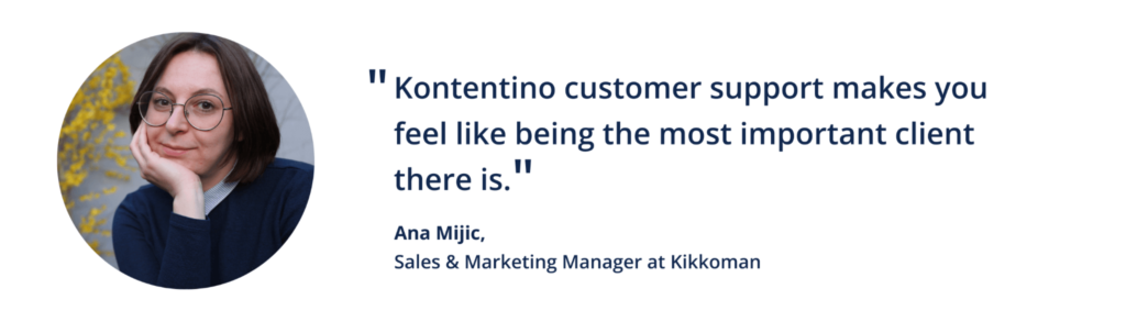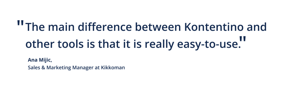 „Úspora času nie je jediným benefitom,“ dodáva Ana. „Práca s Kontentinom je aj o oveľa lepšej organizácii.“ Predtým mala Ana plochu počítača plnú priečinkov pre každú krajinu, kde Kikkoman pôsobí. Teraz je všetko prehľadné a na jednom mieste. „A ako rada hovorím, dobrá organizácia je polovica práce a s Kontentinom je to možné.“