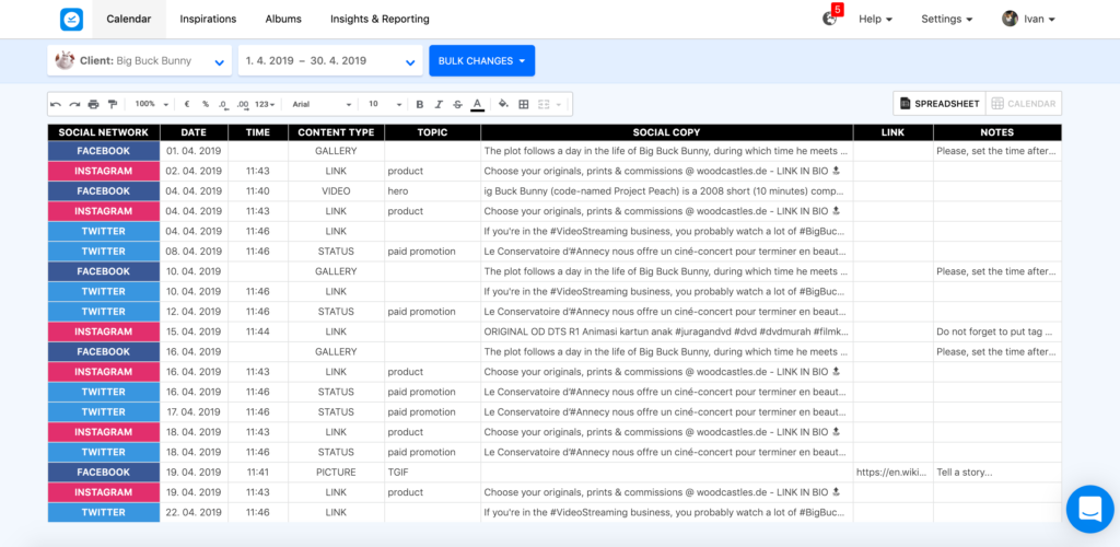 Μπορείτε εύκολα να δοκιμάσετε αυτό το retro feature που θα σας μεταφέρει πίσω στις παλιές (και χαοτικές) ημέρες του planning και της έγκρισης μέσω spreadsheets. Μεταβείτε στο content calendar σας στο Kontentino και κάντε κλικ στο “spreadsheet” στην πάνω δεξιά γωνία.