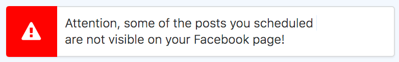 - si vous avez programmé un post depuis Kontentino, mais que vous avez dû modifier manuellement la date de publication directement sur Facebook (Kontentino n’est pas informé de ce changement, c’est pourquoi il vous avertit)