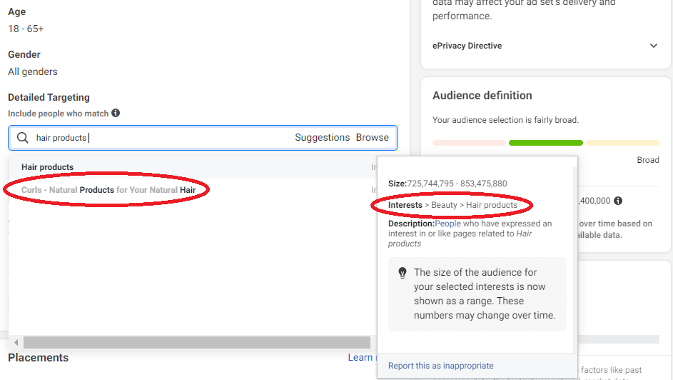 Okrem Audience Insights môžete použiť Facebook Ads Manager na odhalenie rôznych záujmov vašej cieľovky.