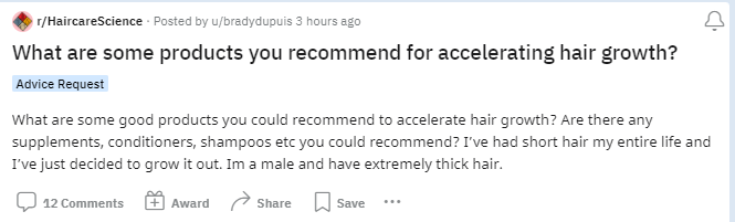 Ak sa pohybujete v oblasti krásy a vlasov, prejdite si desiatky relevantných subredditov a zistite, aké problémy ľudia riešia, aké produkty odporúčajú atď. Zapíšte si to a vytvorte nápady na obsah na základe týchto poznatkov.