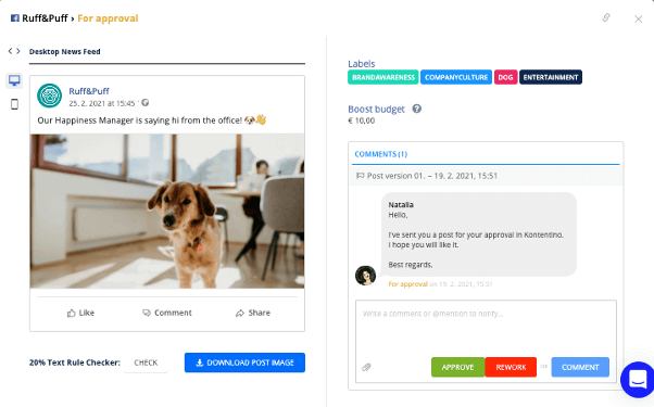 Kontentino ponúka komplexné riešenia pre spoluprácu. Priraďujte úlohy, schvaľujte príspevky, sledujte zmeny a zbierajte inšpiráciu od klientov na jednom mieste.