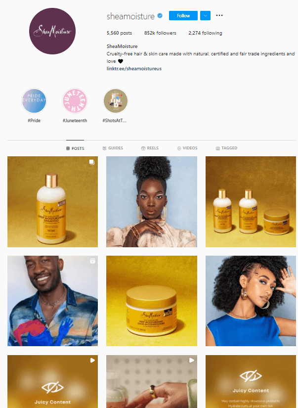 - Vyhľadajte ich na sociálnych sieťach. V tomto príklade používame Shea Moisture, jednu zo značiek, ktorá sa často objavovala pri vyhľadávaní produktov na vlasy.