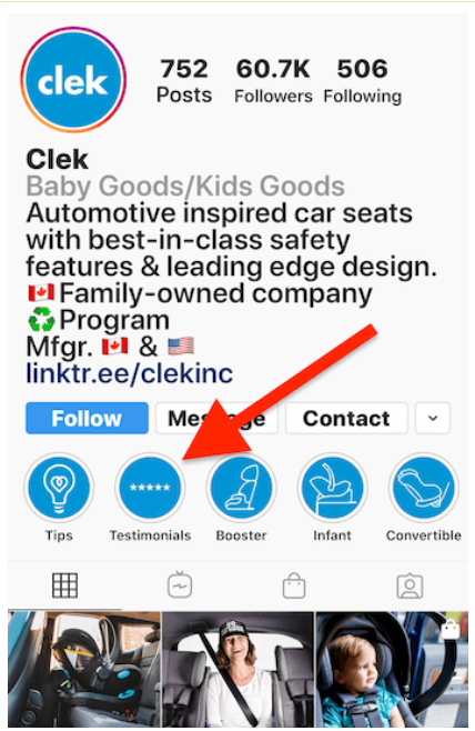 Uistite sa, že potenciálny kupujúci môže vidieť skúsenosti predchádzajúcich zákazníkov. Vytvorte si Instagram Stories Highlights, kde budete prezentovať referencie. Pri ich publikovaní nezabudnite na best practices pre Instagram Stories.