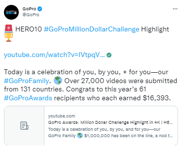 Skvelým príkladom je dnes už slávna výzva #GoProMillionDollarChallenge od GoPro. Účastníkov motivovali natočiť „niečo epické“.