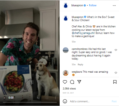 Instagram a jedlo patria k sebe. Platforma na rozvoz jedla Blue Apron to vie a spolupracuje s tvorcami, ktorí zdieľajú recepty vytvorené skutočnými milovníkmi jedla.