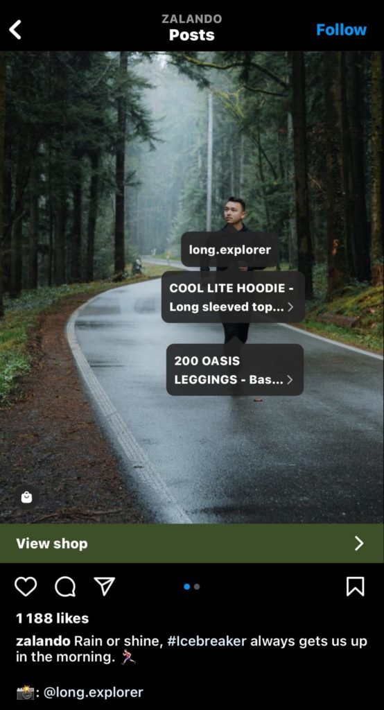Ak je vašou hlavnou platformou Instagram, môžete tieto UGC posty urobiť predajnými. Príkladom je Zalando, ktoré v shoppable UGC postoch exceluje.