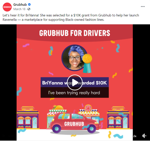 Grubhub genellikle sektörü desteklemek için başarılı restoranları öne çıkarırken, burada iş gücüne odaklanan bir post örneği görüyoruz.