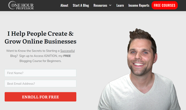 OneHourProfessor.com, kullanıcıların erişebileceği tamamen ücretsiz bir online kurs oluşturdu. Facebook reklamları kullanıcıları siteye yönlendiriyor ve ardından ücretsiz kursa kaydolmalarını sağlıyor. Bu süreç, bir pazarlama hunisi aracılığıyla ücretli üyeliklere ve iş ortaklığı kazançlarına kapı açıyor.